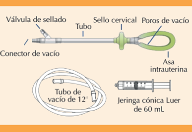 El dispositivo intrauterino de control de hemorragia por vacío, conocido como sistema Jada o JADA, está diseñado para proporcionar un tratamiento rápido. Utiliza un vacío intrauterino de baja intensidad para apoyar las contracciones uterinas fisiológicas, lo que ayuda a contraer los vasos sanguíneos del miometrio y alcanzar la hemostasia.26 El objetivo principal del procedimiento de este dispositivo es controlar eficaz y rápidamente el sangrado excesivo cuando las terapias conservadoras de primera línea han fallado y, al hacerlo, reducir la pérdida de sangre y la morbilidad y mortalidad materna asociadas con hemorragia posparto resultantes de atonía uterina.27
