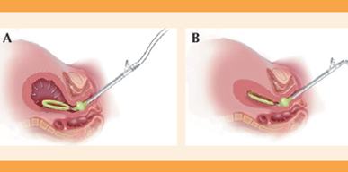 Figura 3 (A) Colocación del sistema JADA con el sistema generador de vacío de baja intensidad conectado y (B) Contracción uterina con el sistema JADA.