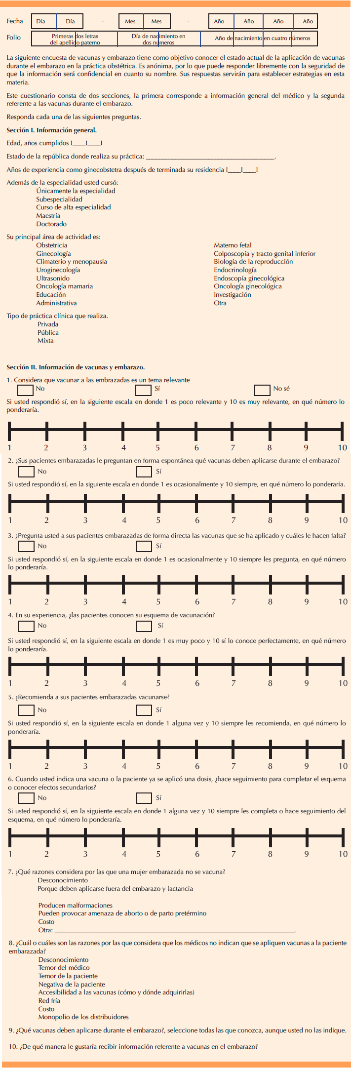 Las respuestas a la encuesta fueron objeto de un proceso de validación por un equipo de ginecoobstetras seleccionados por la Vocalía de Educación e Investigación del Consejo Directivo del Colegio Mexicano de Especialistas en Ginecología y Obstetricia (COMEGO) 2023-2024. La encuesta validada se aplicó durante el 72 Congreso Mexicano de Obstetricia y Ginecología. Los médicos participantes la respondieron de forma personal y voluntaria.
