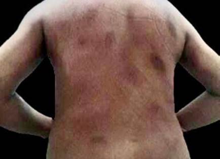 Se presenta a un paciente masculino de 34 años, militar en activo, sin antecedentes personales patológicos, que llegó al servicio de urgencias del Hospital Militar Regional de Especialidades de Mazatlán, Sinaloa el día 15 de julio de 2021 por presentar máculas eritematosas en diana y vesículas de contenido seroso con predominio en miembros inferiores, tórax y torso. Eritema generalizado, prurito en palmas de ambas manos, disfagia, cavidad oral con queilitis bilateral, conjuntivitis, prepucio con presencia de edema con tejido necrótico y escroto con inflamación, así como signo de Nikolsky positivo, afectando el 10% de la superficie corporal total, el cual fue desencadenado inmediatamente tras la administración de 1 tableta del medicamento trimetoprima/sulfametoxazol, por antecedente diagnóstico de diarrea bacteriana (Figura 1, 2 y 3).
