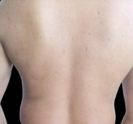 El día 27 de julio de 2021 se decidió el egreso hospitalario del paciente por mejoría al reportarse como hemodinámicamente estable, estado de hidratación normal, signo de Nikolsky negativo, composición corporal sin máculas eritematosas en diana ni vesículas, cavidad oral normal, aspecto de genitales sin anormalidades, así como resto de la exploración física dentro de los parámetros normales, por lo cual, se sugirió continuar con su plan de tratamiento de prednisona, pirfenidona en gel y se dieron indicaciones de cuidados generales y datos de alarma. Se citó nuevamente a consulta externa para valoración y control, del cual se dio de alta sin complicaciones por el servicio de dermatología (Figura 4).