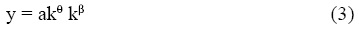 where y is real per capita output, k denotes the stock of physical (domestic) capital per capita, and φ (kf) captures the externality generated by additions to the stock of FDI capital. β represents the share of private domestic capital per capita. It is also assumed that β is less than one, such that there are diminishing returns to private domestic capital per worker; i.e., each additional unit of private domestic capital that we give to a single worker increases the output of that worker by less and less.
