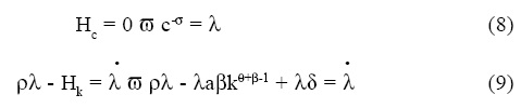 Taking derivatives of equation (7) with respect to c and private (domestic) capital, k, we obtain the following first order conditions:
