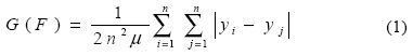 donde: n es el tamaño de la población; yi es el ingreso del i-ésimo o j-ésimo individuo, y µ la media del ingreso de la distribución del ingreso.