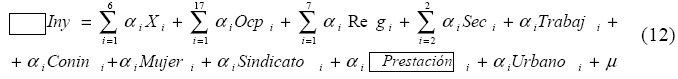 17 La muestra corresponde a los diferentes años como sigue: 3 088 individuos según la ENIGH 1984; 8 182 en 1989; 6 728 en 1992; 7 915 en 1994; 8 804 en 1996; 7 036 en 1998; 6 527en 2000, y 14 653 de la de 2002. Por otro lado, se consideraron las siguientes características: a) como ingreso principal el del mes anterior a la fecha de la entrevista; b)se abarcaron sólo los ingresos provenientes del rubro sueldos y salarios; c) individuos que tuvieran entre 12 y 75 años; d) se utilizó el ingreso trimestral normalizado (para comparar el ingreso en diferentes años se calculó el ingreso real a precios de septiembre de 1994; para ello se ajustó el ingreso nominal utilizando los índices de precios al consumidor de toda la República); e) se incluyó sólo a los individuos que trabajaran tiempo completo; es decir, entre 35 y 50 horas a la semana, debido a que en muchas oficinas gubernamentales y privadas el tiempo completo consta de sólo siete horas diarias, con dos días de descanso a la semana, mientras que en otros casos los trabajadores laboran más de ocho horas diarias durante seis y hasta siete días, dependiendo del trabajo que se acumule.