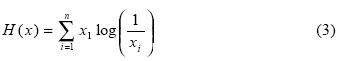 donde: H(x) es la medida de entropía esperada de la situación, considerada como la suma del contenido informativo de cada suceso ponderado por la probabilidad respectiva; x es la probabilidad de que n sucesos ocurran. Es evidente que cuanto más se acerquen las n probabilidades x1 a 1/n, mayor es la entropía.