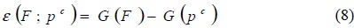 , cuando se emplea ρ para representar F, se incurre en un error de aproximación ε(F; p) que se define en términos del grado de dispersión del ingreso de los grupos, medido con el coeficiente de Gini: