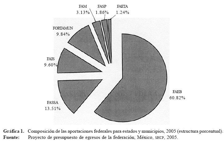 A partir de 1998 se incorporó en la Ley de Coordinación Fiscal el capítulo V, el cual establece transferencias a los gobiernos estatales y municipales condicionadas a la consecución y cumplimiento de los objetivos que se señalan en cada uno de los fondos de aportaciones siguientes: a) para la educación básica y normal (FAEB); b) para los servicios de salud (FASSA); c) para la infraestructura social (FAIS); d) para el fortalecimiento de los municipios y de las demarcaciones territoriales del Distrito Federal (FORTAMUN); e) de aportaciones múltiples (FAM); f) para la educación tecnológica y de adultos (FAETA), y g) para la seguridad pública de los estados y del Distrito Federal (FASP).