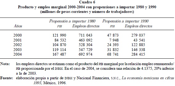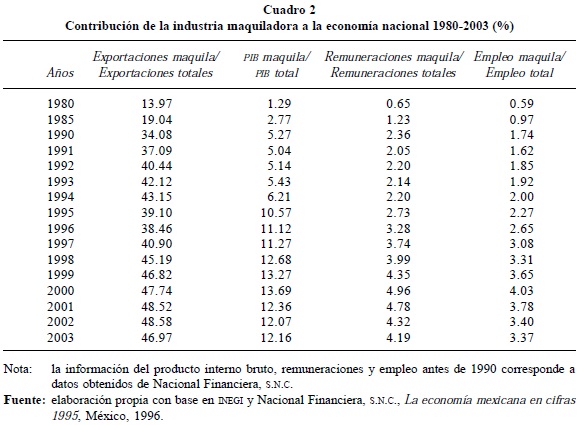 15 G. Fujii y C. Gaona, "El modelo maquilador como barrera al crecimiento del empleo y los salarios en México", en Economía Informa, núm. 323, México, UNAM, febrero de 2004, pp. 63-64.