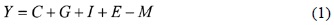 La evaluación de la naturaleza de la articulación de la industria maquiladora con la economía nacional puede realizarse mediante el diseño e implantación de un modelo macroeconómico simple, en el cual el producto mexicano (Y) se define tradicionalmente como la suma de los diferentes componentes de la demanda agregada: consumo privado (C), consumo del gobierno (G) inversión privada y pública, incluyendo la variación de inventarios (I), las exportaciones (E) menos las importaciones (M).