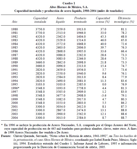 Rueda Peiro, Isabel, "Evolución de la industria siderúrgica en México", en De la privatización a la crisis, el caso de Altos Hornos de México, México, Porrúa, 2001. [ Links ]