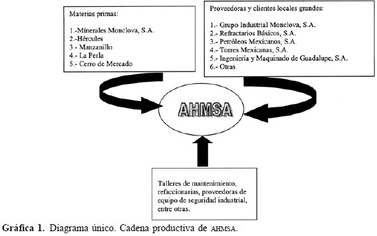 No obstante, si analizamos la cadena productiva de AHMSA, encontraremos que intervienen un conjunto de empresas subsidiarias productoras de mineral de hierro, carbón, refractarios y otros insumos. En otras palabras, todavía mantiene un alto nivel de integración vertical, de aproximadamente 65%, muy común en ese tipo de empresas. Quizá por el carácter rígido de la producción de acero, porque los altos hornos no pueden dejar enfriar el crisol, las materias primas básicas, hierro y carbón, pertenecen al consorcio, lo cual coloca obstáculos para redistribuir segmentos del mercado local y consolidar el cluster.