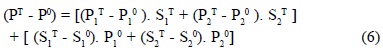 P iT : nivel del valor agregado por persona empleada en el sector i = 1 o 2 al instante t = T.