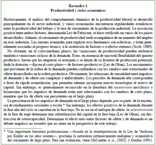 Efectivamente, la interpretación neoclásica de la evolución de la productividad no permite explicar toda la dinámica observada en la región. Las mediciones de la productividad global de factores realizadas en contabilidad del crecimiento por el tradicional método de la función de producción agregada pueden prestar a diagnósticos erróneos o por lo menos incompletos. La fuerte sensibilidad de la productividad intrínseca al ciclo económico deja pensar que está también determinada por la demanda. Introducir un elemento de demanda en la determinación de la productividad implica, a su vez, introducir elementos de endogeneidad que transforman productividad y crecimiento en un fenómeno cumulativo, al menos hasta cierto punto. Aunque eso es un aspecto fuertemente debatido en la literatura, no cabe duda -por lo menos en el caso de América Latina-, que no se puede explicar la dinámica del crecimiento de largo plazo sin incorporar al modelo elementos de demanda y de sostenibilidad externa.