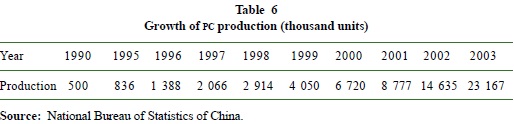 In the early 80s, the computer industry hardly existed in China. Since the 1990s, China's computer industry has been developing at an accelerated speed. In 1990, the number of PCS produced was only 500 thousand, while in 2003, over 23 million were produced by this country.