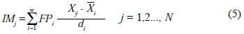 i representa el valor de la media del indicador i; di denota la desviación estándar del indicador i ; FPi es el factor de ponderación del indicador i; N es el número de la muestra considerada en el estudio; y w es el número de indicadores de marginación utilizados. Los indicadores denotados por la variable i corresponden a aspectos sobre el nivel de marginación de la población como población analfabeta, viviendas sin drenaje, niveles de ingreso, entre otros.