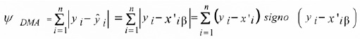 donde la función signo devuelve 1 si el número es positivo, 0 si el número es cero y -1 si es negativo. La estimación de β es un problema que se resuelve con técnicas de programación lineal.