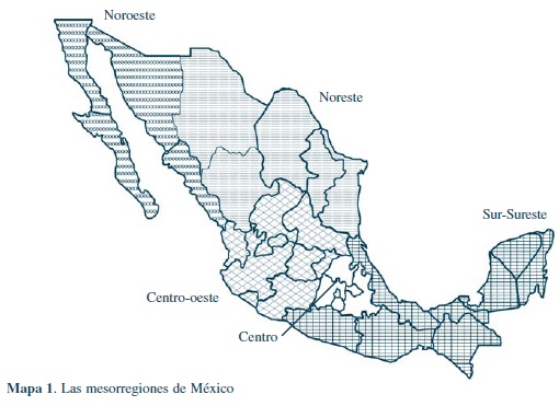 6 En 2000 el gobierno federal generó cinco unidades de planeación estratégica denominadas mesorregiones Centro, Centro-Oeste, Noroeste, Noreste y Sur-Sureste (PND, 2000-2006).
