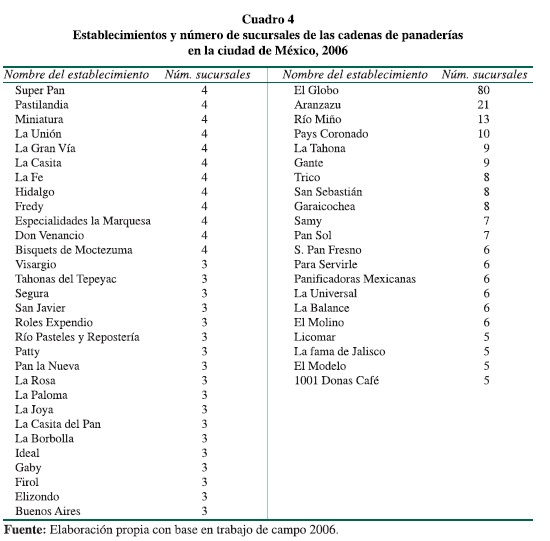 De los establecimientos dedicados al giro de la panificación 24.5% se integra por empresas familiares, sociedades y capital corporativo que cuentan con más de dos sucursales y representan a 50 nombres o marcas de panadería y pastelería distintas, las cuales suman un total de 336 establecimientos. En este porcentaje se encuentran marcas de pan destacadas como El Globo, Aranzazu, Gante, Elizondo, El Molino, Trico, Panaderías Mexicanas, Pastilandia, así como panaderías y pastelerías reconocidas, no tanto por sus altos volúmenes de comercialización, sino por su tradición como la Fama de Jalisco, la Gran Vía, la Borbolla, Río Pasteles y Repostería, Especialidades La Marquesa, Tahonas del Tepeyac, entre otras.