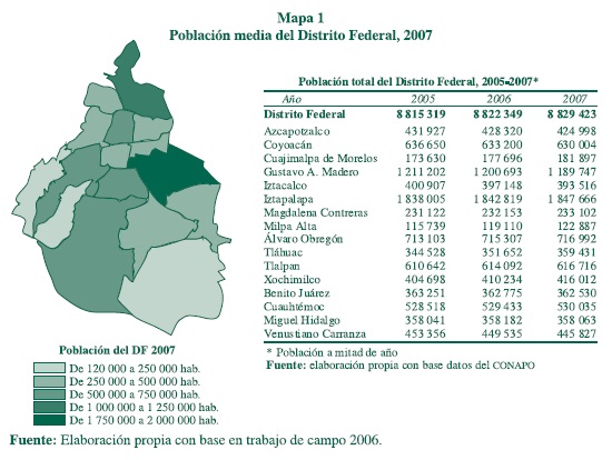 En su interior, la ciudad de México es un espacio urbano que muestra marcados contrastes. El porcentaje menor de colonias en el ámbito de delegaciones es de tipo residencial que corresponde a la ocupación de población de niveles de ingresos más altos y además concentra la mayor extensión de áreas verdes, modernas construcciones y una vasta actividad comercial y de servicios. Por otra parte, en su área circundante la mayoría de los asentamientos es de tipo popular, los cuales apenas cuentan con el equipamiento suficiente para cubrir las necesidades urbanas más elementales; pero, en cambio, registran una gran dinámica comercial en el sector informal, así como una gran presencia de las micro y pequeñas empresas comerciales y de servicios, muchas de las cuales son panaderías.
