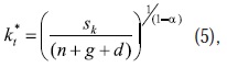 dónde sk es la proporción de renta por trabajador destinada al ahorro, y así, a la acumulación de capital físico, y d es la tasa de depreciación del capital.