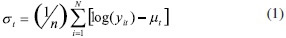 σ t = es la desviación estándar muestral de log (yit)