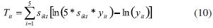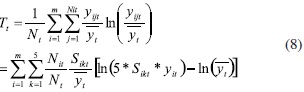 es el índice de desigualdad de Theil para la región i en el tiempo t. A partir de las definiciones de proporción del ingreso, el índice de Theil regional es: