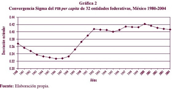 1. Todos tienden a concluir que hubo convergencia entre las entidades federativas de México hasta mediados de los ochenta, pero este proceso se detuvo en los años posteriores.