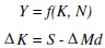 Si se consideran los aspectos monetarios de las opciones de inversión, se observa que la tasa de crecimiento del ingreso real estará determinada por la acumulación de capital físico (ΔK) y el crecimiento de la población (ΔN), pero a diferencia de lo anterior, esta última no será igual al ahorro S, puesto que una parte de ésta se asignará a la obtención de saldos monetarios reales (ΔMd), de forma tal que: