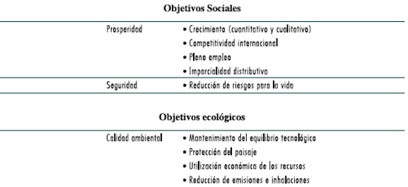 Entre los llamados costos directos pueden encontrarse los del proyecto, las tecnologías, el transporte, los recursos, la producción, los impuestos, la mano de obra, los intereses. Mientras que los costos externos, ecológicos o sociales, cuentan con el "importe" sobre la salud humana, los daños al ambiente, la flora, la fauna, el clima (emisión de gases invernaderos), el agotamiento de las reservas naturales, el desempleo, las guerras por citar los más importantes (Hohmeyer, Olev, 1992:365-374).