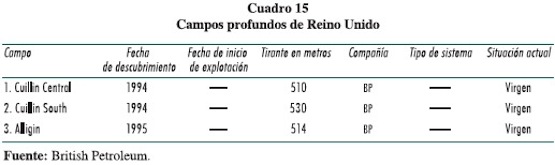 Desde la primera mitad de los noventa este país descubrió en sus aguas profundas sus primeros campos en áreas del margen del Atlántico. Después de casi 15 años ninguno de ellos ha producido. Nuestra pesquisa nos permite concluir que en el Mar del Norte no se han descubierto campos en profundidades de 500 metros o más, los únicos tres campos profundos se ubican al noroeste de Escocia, cerca de las islas Faroes.
