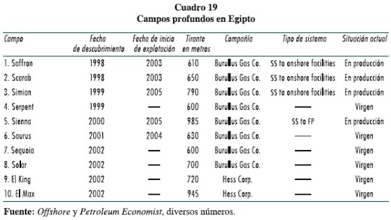 32 Véase "Deepstar gas development off Egypt overcomes challenges", Oil & Gas Journal, 10 febrero 2003. La administración general del proyecto fue entegada a Bechtel, igual que ocurrió en el caso del proyecto de inyección de gas nitrógeno a Canterell en México ("Innovative subsea development solution for deepwatwer Egyptian field", Pipeline & Gas Journal, august 2002, http://findarticles.com/p/articles/mi_m3251/is_8_229/ai-N25053380.