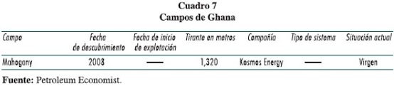 Igual que Mauritania este país apenas está iniciando perforaciones y explotación de sus campos profundos (cuadro 6).