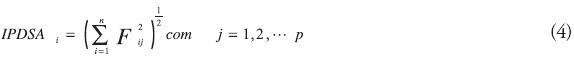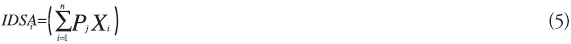 Para la construcción del IDSA fueron utilizados los procedimientos metodológicos desarrollados en la sección anterior para la construcción de Índices de Condiciones Ambientales, pero adaptados para el caso específico. Fue necesario, inicialmente, la estimativa y la construcción de un índice parcial, así como se hizo en la construcción del ICA. Ese índice es llamado Índice Parcial de Desarrollo Socioeconómico Ambiental (IPDSA). Estimado y construido por medio de la Ecuación 4, siendo los factores comunes obtenidos también a través del empleo de la técnica de análisis factorial por componente principal.