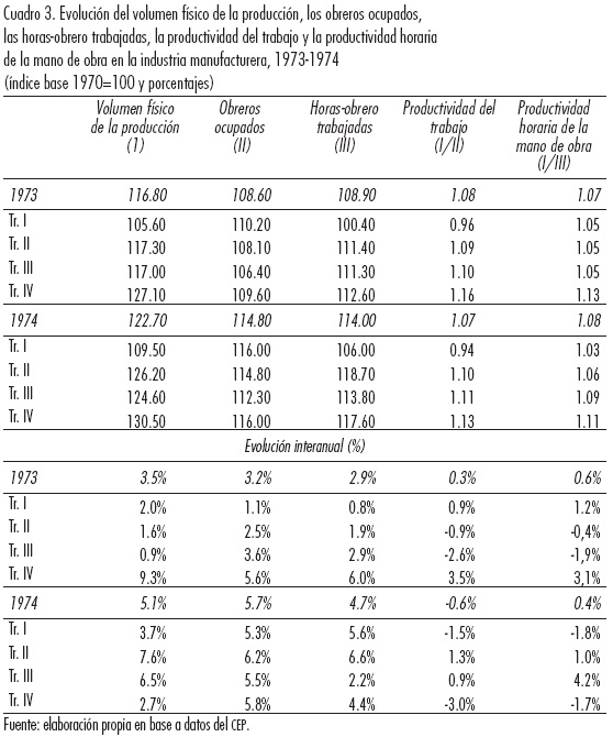 En este contexto de mayor desarrollo de los sectores menos capital-intensivos, la productividad de la mano de obra en la industria se mantuvo prácticamente constante durante el periodo, dado que tanto el volumen físico de la producción industrial como los obreros ocupados en el sector tuvieron incrementos similares (Cuadro 3).