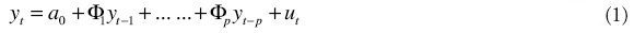 Se determinaron cuatro rezagos óptimos (p) a partir de criterios de información de Akaike, error final de predicción (final predictor error) y razón de verosimilitud (LR):
