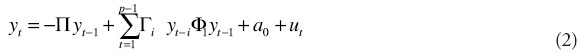 5. El modelo VAR irrestricto se puede reescribir en una versión de vector autoregresivo con corrector de errores (VECM):