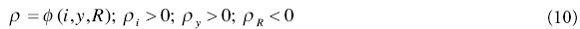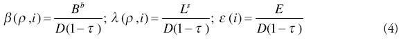 Donde β es función decreciente de ρ y función creciente de i; en donde λ es función creciente de ρ y función decreciente de i. Finalmente el modelo asume, por simplicidad, que sólo i influye en la demanda de exceso de reservas, donde ε es una función decreciente de la tasa de interés de los bonos. Por tanto, la oferta de crédito queda determinada de la siguiente manera: