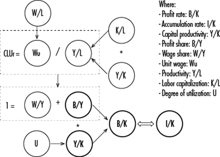 The premise of departure, justified in the analytical framework, is that both profit and investment are central variables involved in growth dynamics (Sawyer, 1985; Duménil and Lévy, 1993; Setterfield, 2005). Investment is an essential component of aggregate demand, while also having an impact on the supply side through capital accumulation and the growth of productivity. Profit is the principal benchmark for business forecasts, the measure upon which future investment decisions are based. If investment and profit are correlated, it is likely that the same correlation will be reflected in the ratios of these variables to the capital stock, as asserted in seminal works by Michal Kalecki, Joan Robinson, and other authors in the post-Keynesian tradition. However, many papers about economic growth ignore the macrodynamic relationship between these variables.