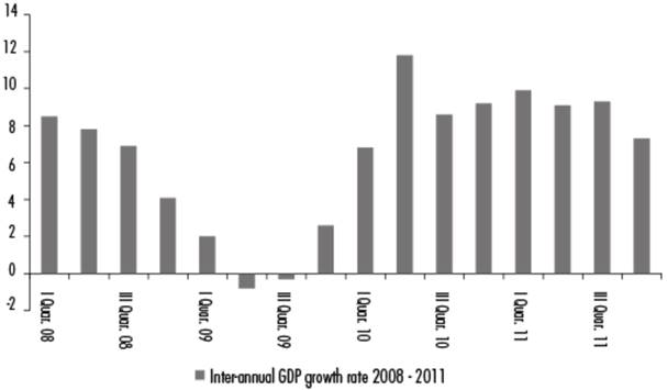 This set of measures proved able to confront the main effects of the global crisis, leading to two years of good GDP growth: 9.2% in 2010 and 8.9% in 2011, while, according to MECON (2012), global GDP grew at 5.1% and 3.8%, respectively, and that of the Union of South American Nations (UNASUR), 6.6% and 5%, respectively.