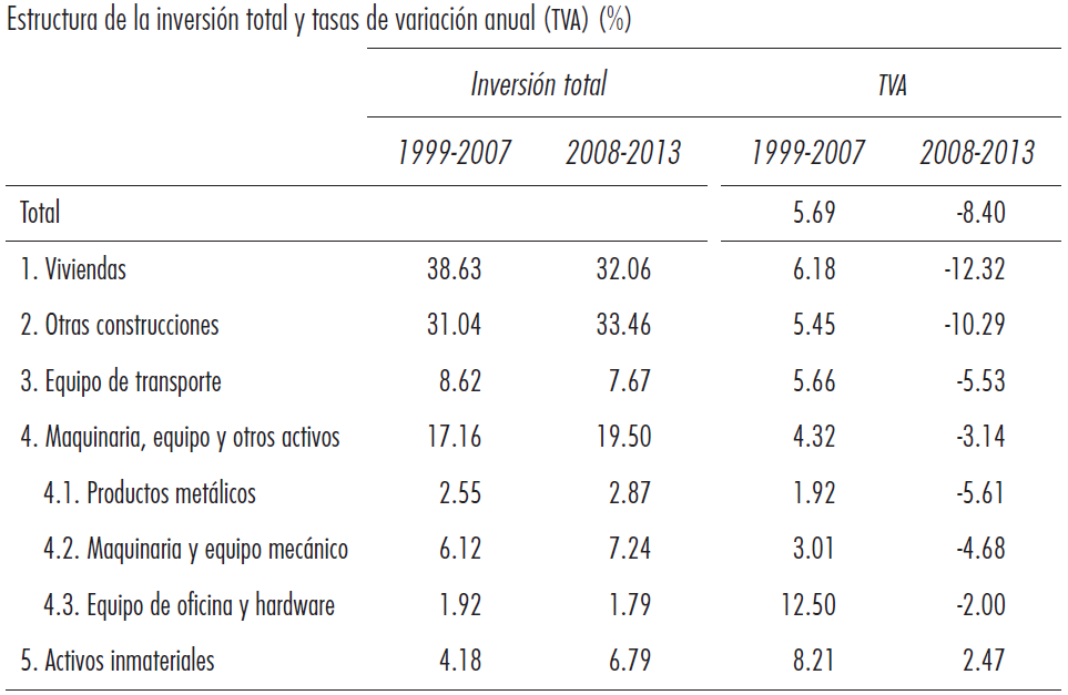 En este apartado, el proceso de acumulación se aborda desde la perspectiva tanto de la composición de la inversión por tipo de activo, como de la reconfiguración sectorial de la economía española.