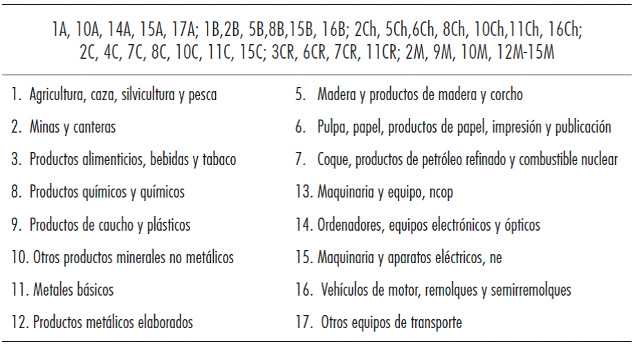 Del total de exportaciones, las industriales tienen mayor peso; por ejemplo, en 2015 Brasil exportó 35.4 mil millones de dólares, de los cuales, el 74.6% eran industriales. Las economías tienen una participación promedio de exportaciones industriales del 69.7% sobre el total, sólo Colombia tiene una participación del 44.2% (15.7 mil millones de dólares). A nivel de rama, el Cuadro 3 muestra la composición y crecimiento promedio de las exportaciones/importaciones.