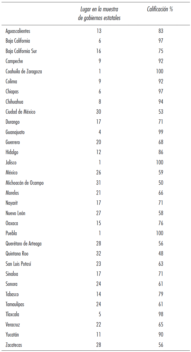 En el Cuadro 6 se observa el posicionamiento de la Ciudad de México en el lugar 30, sólo arriba de Michoacán (31) y Quintana Roo (32) con una calificación de 53.0% de un promedio de 76.1% para el total de las entidades.