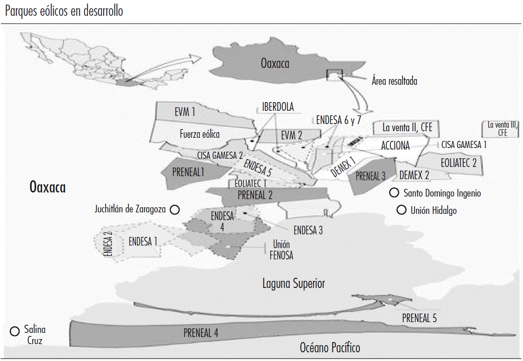 Los parques eólicos en el Istmo de Tehuantepec no son un caso aislado. La política gubernamental vertical y centralizada, a favor de los actores capitalistas privados y contraria a los ciudadanos nacionales, ha sido la tónica, agudizada por la entrada del modelo neoliberal a finales de 1982. Siguiendo esta estrategia privatizadora, donde las corporaciones transnacionales han tenido una participación preponderante, el gobierno ha concesionado o facilitado el usufructo de tierras a estas corporaciones para la minería a cielo abierto, el establecimiento de presas hidroeléctricas, la extracción de hidrocarburos por medio de la fractura hidráulica, el extendido de oleoductos y gasoductos, la implantación de desarrollos turísticos y de vivienda, la construcción de aeropuertos y carreteras, el establecimiento de plantaciones forestales, la producción agropecuaria, y la lista continúa.