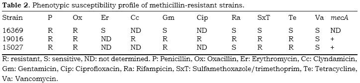 The strains used were Staphylococcus aureus ATCC 6538p and the clinical multiresistant isolates S. aureus CCMC (Colección Cátedra Microbiología Clínica) 15027, 16369 and 19016
