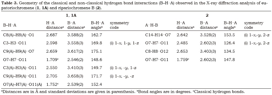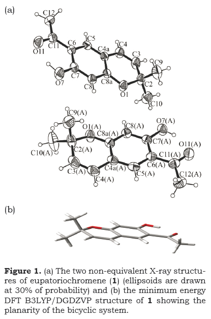 Keywords: Ageratina arsenei, eupatoriochromene, ripariochromene B, X-ray diffraction, non-classical hydrogen bond interactions, NMR, DFT calculations, GIAO method.