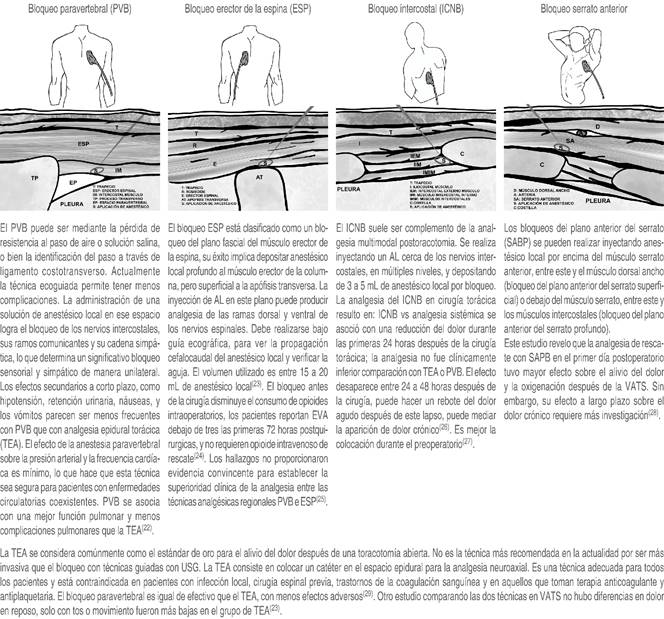 Se describen las técnicas de bloqueos analgésicos para la cirugía de tórax (Figura 1).
