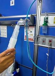 Se acopla la porción proximal de catéter DuCanto mediante un conector universal de 15/22 mm de un tubo endotraqueal de DI 9 mm y se conecta al ventilador mecánico automático o a un dispositivo bolsa válvula mascarilla autoinflable (Figura 6).
