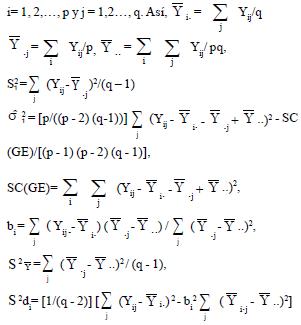 Yij es el rendimiento de grano de la iésima variedad en el jésimo ambiente y, donde,