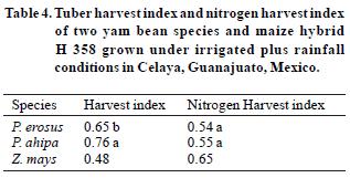 Key words: Phachirizus erosus and P. ahipa, nitrogen harvest index, plant biomass.